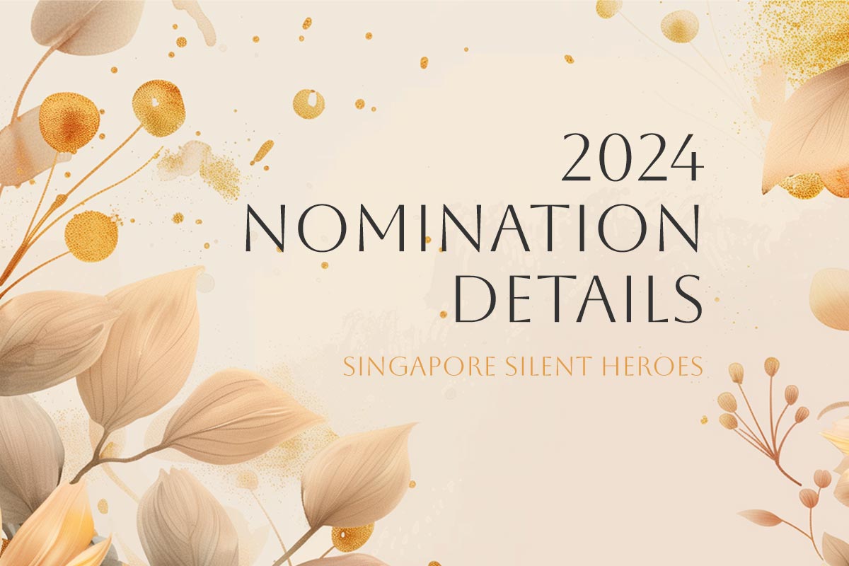 There are a total of 5 award categories for this year’s Singapore Silent Heroes 2024 – The 11th Edition. They are: Heart of Humanity, Pioneer of Promise, Outstanding Adult, Inspiring Youth and Compassionate Foreigner Please read the criteria for each category carefully before nominating anyone for the Singapore Silent Heroes Awards.